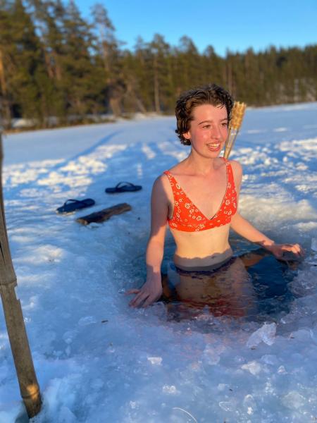 « J’étais stressée d’aller dans le lac mais tout le monde m’a encouragée et m’a expliqué comment faire alors je me suis motivée. Au début c’était froid mais je me suis concentrée, j’ai respiré très fort et le froid a disparu. En sortant j’étais en maillot de bain sur la glace, au milieu du lac et je n’avais pas froid, je me sentais même… bien ! » Colombe