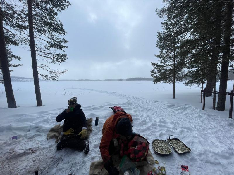 D’ailleurs aujourd’hui, la neige était impraticable et nous n’avons pas pu faire de traineau cet après-midi. C’est l’occasion pour les chiens de se reposer et pour nous, de préparer le camp et de s’amuser au chaud dans nos cabanes !