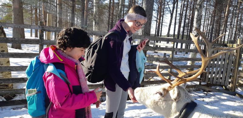 Samedi 6 avril Notre avion atterrira, après 3 vols, demain soir, à Marseille… et malgré le bouclage des valises et la mélancolie déjà présente chez quelques enfants, il est hors de question de perdre une minute de la fin de ce fabuleux voyage ! Donc aujourd’hui, nous prolongeons un peu plus l’aventure… Baptême de motoneige pour nos sourires ! Après 6 jours d’expédition en chiens de traineaux, plus rien ne leur fait peur, ils apprécient cette nouvelle façon de glisser sur la neige ! Nous visitons ensuite une ferme un peu particulière, car ce sont des rennes qui l’habitent. Cet animal est une icône de la Laponie finlandaise et il y a une bonne raison à cela: le nombre de rennes dans la province équivaut à peu près à celui des habitants. Nous découvrons donc leur environnement et leur distribuons quelques granules alimentaires pour les approcher. Après dîner, Fréderic nous réunit pour le moment émotions. À chacun il demande de prendre conscience de cet instant précis, de l’instant présent et de l’exploit que nous avons réalisé. Comment expliquer l’intensité de ce que nous avons vécu ? Comment verbaliser cette aventure humaine ? Les souvenirs défilent, les meilleurs moments, les complicités et les instants de partage procurent chez chacun de nous des émotions particulières. Personne ne pourra réellement comprendre le chemin que nous avons parcouru ensemble mais nous, nous ne l’oublierons jamais. En complète autonomie dans la neige avec pour seul moyen de déplacement, de magnifiques attelages de chiens de traîneaux, nous avons glissé sur la neige, pris soin de nos chiens, traversé les lacs gelés, découvert des paysages d’un autre monde, dormi à la lisière des bois, fait du feu et respiré de l’air pur. Une merveilleuse aventure de la vie en pleine nature.