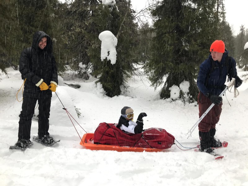Vendredi 29 mars Les enfants ouvrent les yeux sur les décors enneigés de notre premier refuge. Les réactions sont immédiates; joie et émerveillement sont aux rendez-vous, les enfants réalisent enfin qu’ils sont en Laponie Finlandaise.Nous prenons un petit déjeuner copieux, et c’est parti! L’expédition démarre part le franchissement du mont Livaara qui va nous permettre d’accéder aux premières pistes de l’expédition et de découvrir au sommet, l’espace de jeu dans lequel nous allons évoluer. Derrière ces collines que les enfants ont grimpés, il y a les chiens de traineaux qui nous attendent, les refuges bien cachés, les forêts et les lacs gelés au milieu desquels ils vont vivre. Derrière cette colline, c’est le départ de l’expédition, et elle commence demain. Toute l’équipe a finalement réussi, avec beaucoup de sourire! Nous avons pourtant bravé une météo capricieuse, allant du soleil à la tempête en quelques minutes. Nous dormirons finalement au même camp ce soir, l’accès au prochain refuge étant inaccessible à cause de la météo.