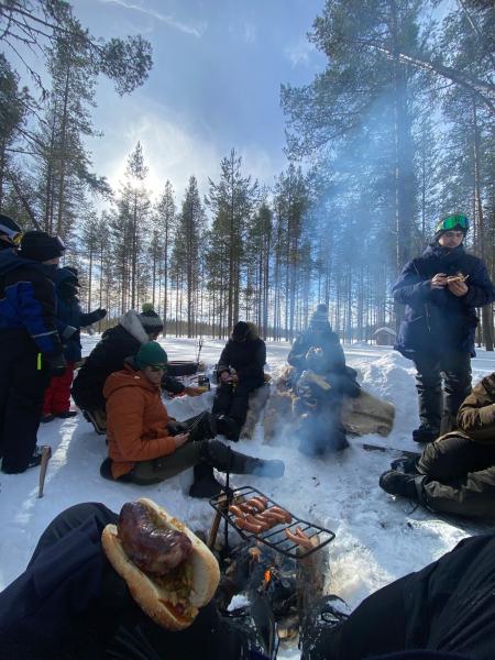 Le retour à la nature est le maître mot de cette expédition. Ici pas de douche, nous nous adaptons aux traditions finlandaises : tous au sauna, et pour les plus vaillants, un plouf dans le lac gelé pour détendre les muscles bien engagés aujourd’hui !
