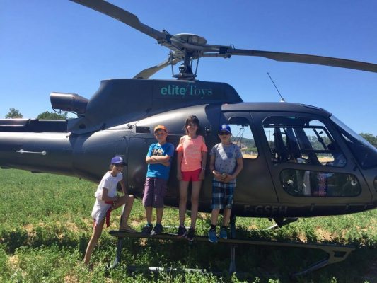 C’est ensuite un bel hélicoptère que les enfants ont vu apparaître dans le ciel et se poser quelques mètres à côté dans le champ.