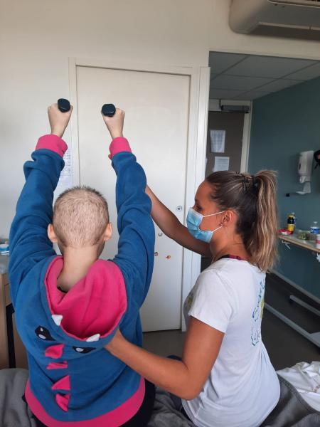 Du mardi au vendredi, une équipe permanente composée d’animateurs et d’éducateurs spécialisés en activité physique adaptée est présente dans les différents services hospitaliers :
